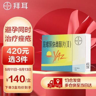 优思悦 屈螺酮炔雌醇片(Ⅱ) 0.02mg:3mgx28片/盒 BayerWeimarGmbHundCo.KG(德国)
