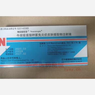 牛痘疫苗接种家兔 3.6Neurotropin单位*3ml*10支 Nippon Zoki Pharmaceutical Co(日本)