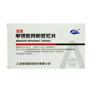 艾坦 甲磺酸阿帕替尼片 0.425g*7片*2板 江苏恒瑞医药股份有限公司