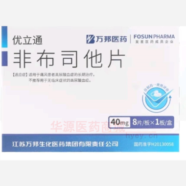 优立通 非布司他片 40mgx8片x2板/盒 江苏万邦生化医药股份有限公司