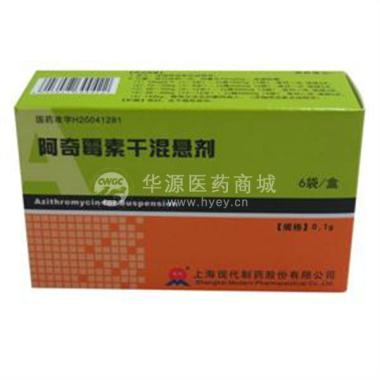 阿奇霉素干混悬剂 100mg*6袋 上海现代制药股份有限公司