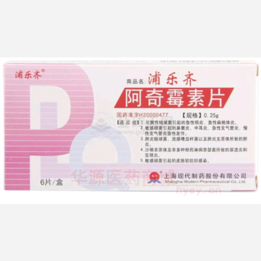 阿奇霉素片(浦乐 250mg*6s 上海现代制药股份有限公司