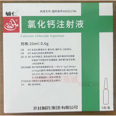 氯化钙注射液 20ml:0.6g*5支 开封制药(集团)有限公司