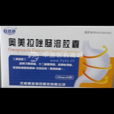 白云湖 奥美拉唑肠溶胶囊 20mgx28粒/瓶 济南明鑫制药股份有限公司