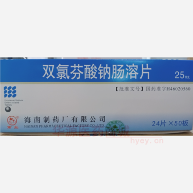 双氯芬酸钠肠溶片 25mg*24s 海南制药厂有限公司