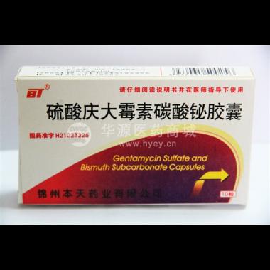本天药业 硫酸庆大霉素碳酸铋胶囊 10粒 锦州本天药业有限公司
