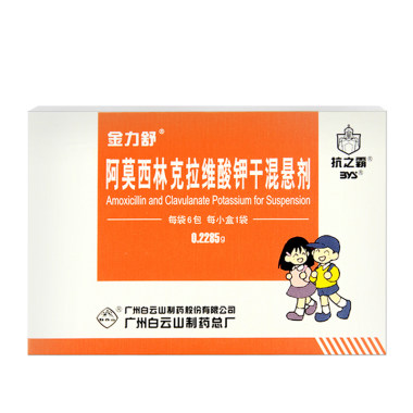 金力舒 阿莫西林克拉维酸钾干混悬剂 228.5毫克×6袋 广州白云山制药股份有限公司广州白云山制药总厂