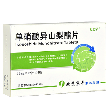 天安堂 单硝酸异山梨酯片 20mgx12片x4板/盒 北京京丰制药有限公司