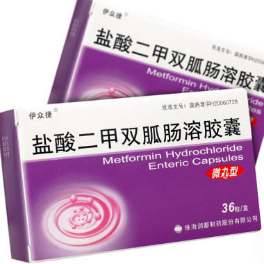 伊众捷 盐酸二甲双胍肠溶胶囊 0.25克x36粒/盒 珠海润都民彤制药有限公司